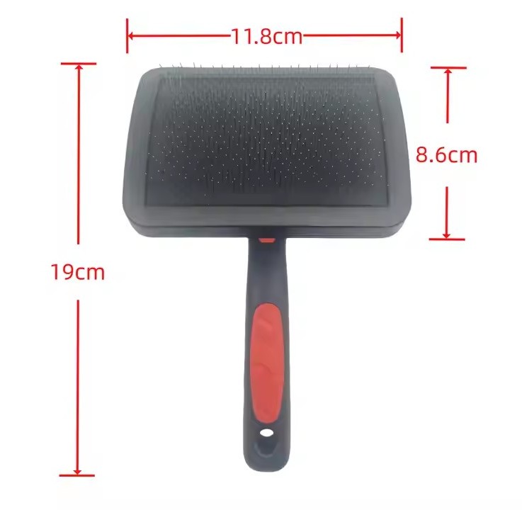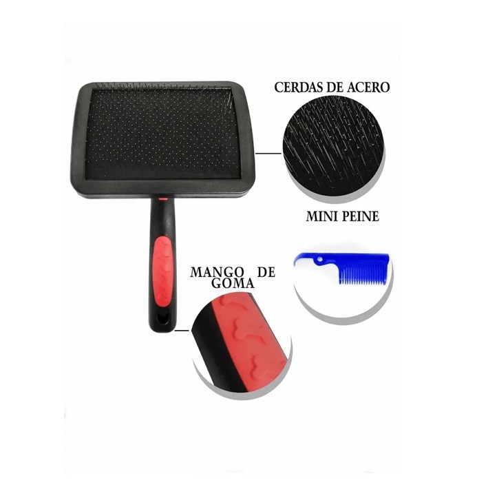 Fabricado con cerdas de acero inoxidable, su diseño robusto garantiza durabilidad y un rendimiento superior en el cuidado del pelaje. El tamaño grande (19×11,8 cm) permite que sea utilizado cómodamente, adaptándose a las necesidades de diferentes mascotas, desde las más pequeñas hasta las de mayor tamaño.